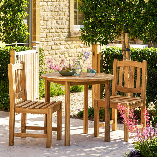 Made from solid teak, our robust, round, 4 seater Churn Table is perfect for enjoying all year round alfresco dining, in your outdoor space. Whilst compact in size, with a diameter of 90cm, you can easily seat 4 around its circumference, ideal for small gardens, terraces, pubs and restaurants.